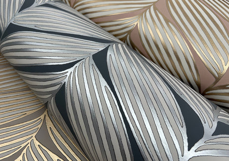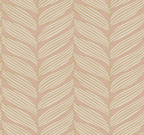 Luminous Leaves Blush & Gold Wallpaper with Metallic Tropical Leaf Motif - York MD7161