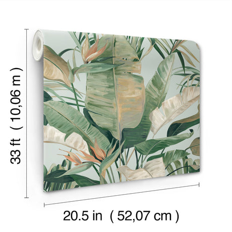 Tropical Green Cabana Wallpaper with Tropical Banana Leaf Motif - York NT6136