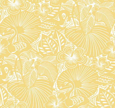 Idalia Yellow Floral Flamingo Wallpaper with Tropical Animal Pattern - A-Street Prints 4135-72715
