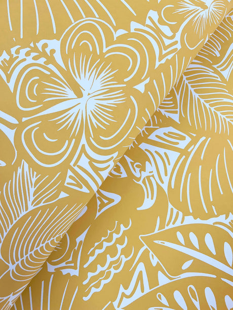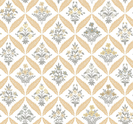 Floral Bazaar Ochre Peel & Stick Wallpaper with Botanical Floral Tile Motif - SSS6313
