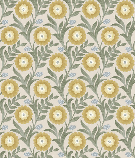 Marguerite Vine Yellow Wallpaper with Vintage Floral Jacobean Pattern - York GT4515