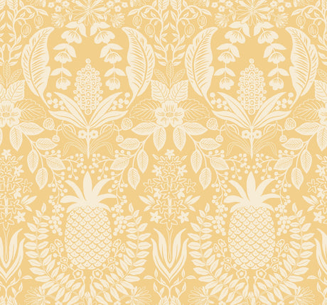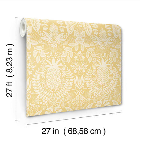 Pineapple Damask Yellow Wallpaper with Traditional Novelty Pineapple Motif - York RF7481