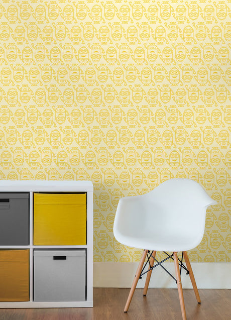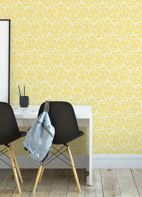 Minions Line Art Yellow Peel & Stick Wallpaper with Kids Novelty Graphics - York RMK12732PLW