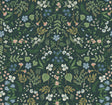 Wildwood Hunter Green Wallpaper with Botanical Floral Pattern, Matte Non-Woven Style - York RI5156